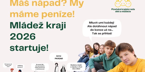 Je ti 15-26 let a máš super nápad? Pomůžeme ti napsat projekt a získat až 30 000 Kč na jeho provedení! Registrace nápadů otevřena do 31. 3. 2026! Registrujte se v sekci "Podat nápad" nebo nám napište na barbora.vlnova@PKRDM.cz.